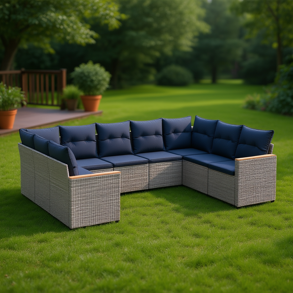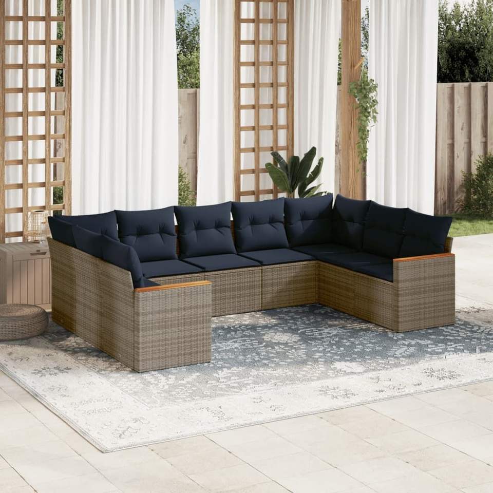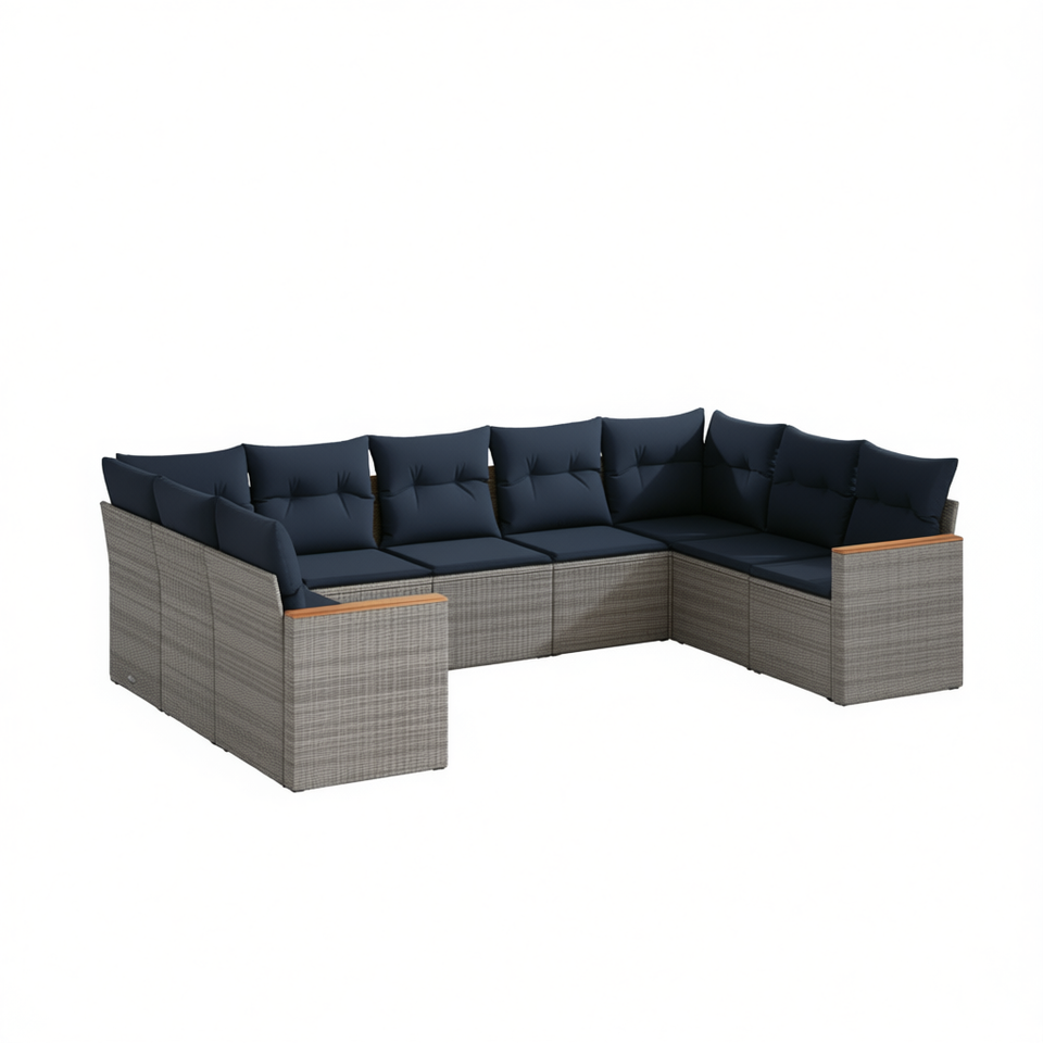 Ensemble de canapés de jardin en polyrotin gris avec coussins, 9 pièces, mobilier d'extérieur au design contemporain