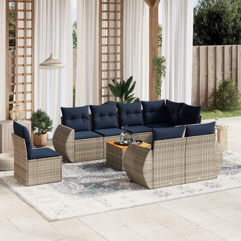 Ensemble de canapés de jardin en polyrotin gris, 9 pièces, avec coussins