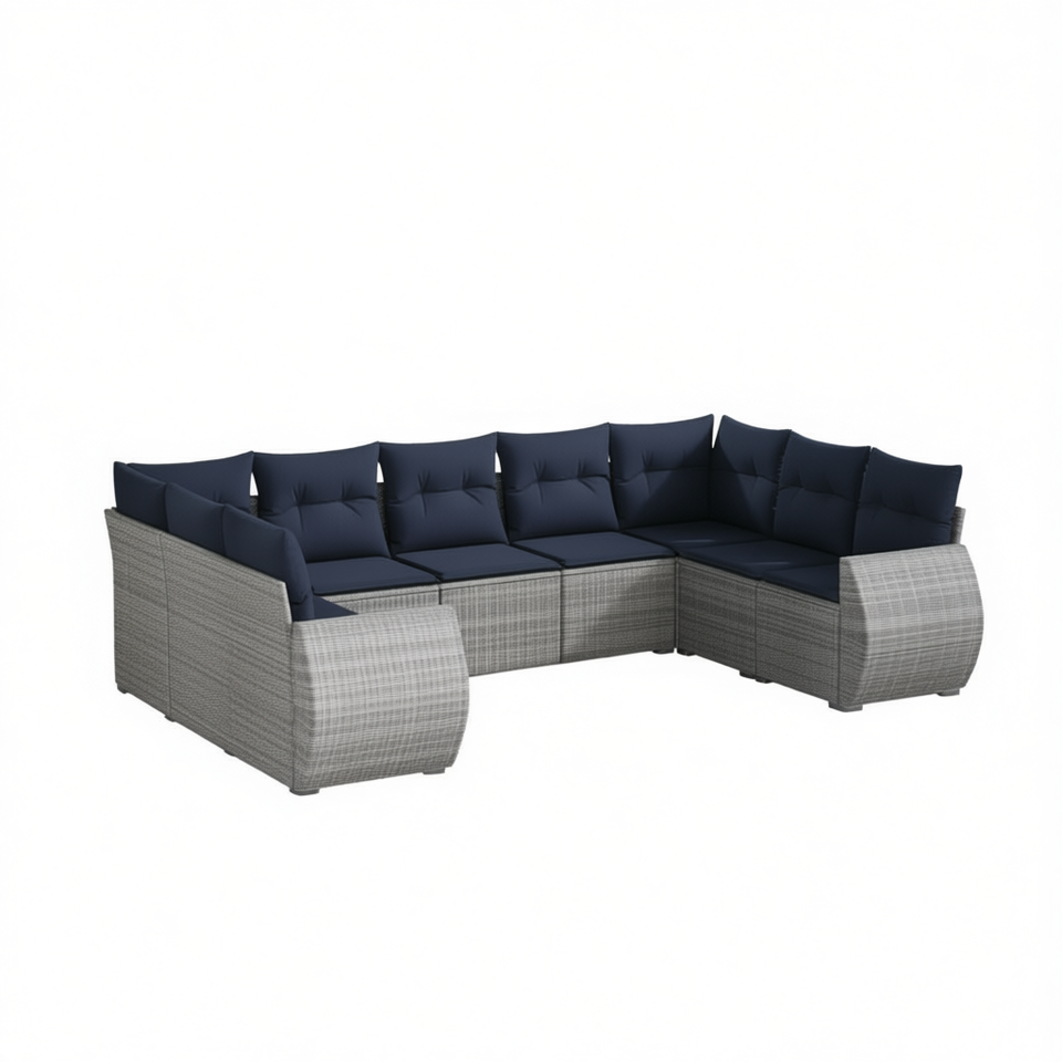 Ensemble de canapés de jardin en polyrotin gris avec coussins, 9 pièces, mobilier d'extérieur au design contemporain