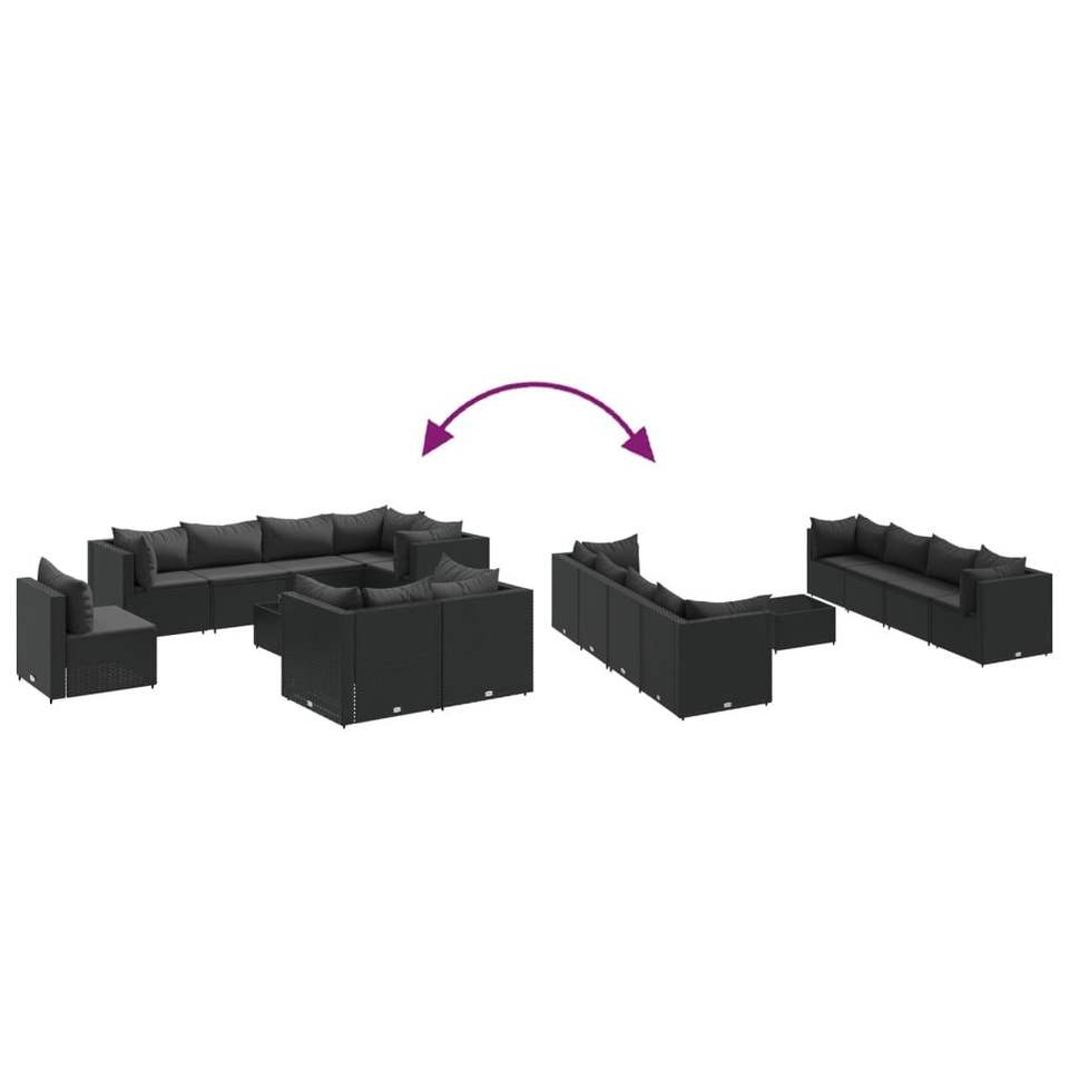 Ensemble de salon de jardin en rotin PE noir de 9 pièces, ensembles de 8 ou 9 pièces