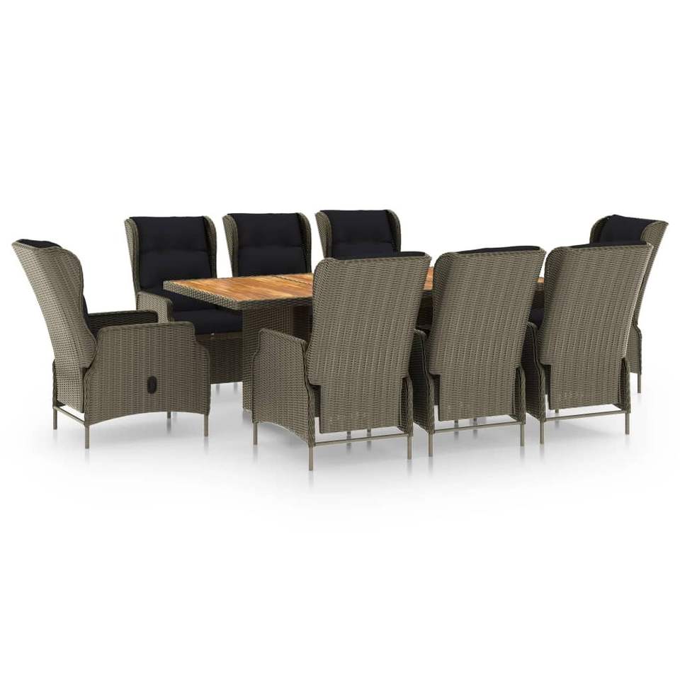 Ensemble de salle à manger de jardin en rotin PE brun 9 pièces, mobilier d'extérieur résistant aux intempéries, design contemporain