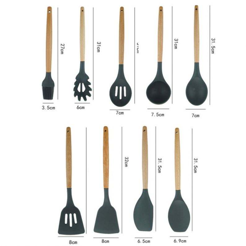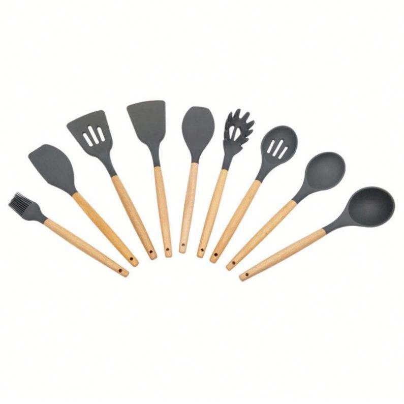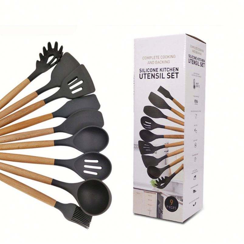 Ustensile de silicone faisant cuire l'ensemble:800 g/set, Silicone avec manche en bois