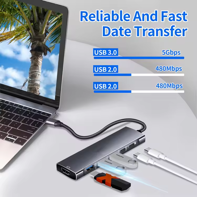 Adaptateur 9 en 1 avec 4K HDMI PD Charging SD Micro Card Reader USB 3.0 3.5mm Headphone USB C HUB pour iPad Pro Air Jack Type C