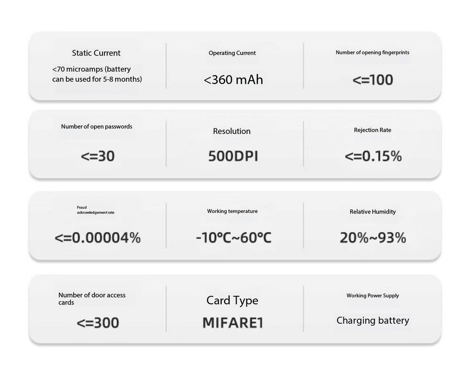 Contrôle de l'application, Clé, Carte, Fingerprint,Password,Face RecognitionMéthode de déverrouillage