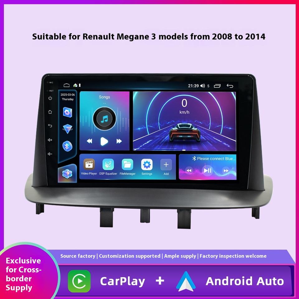 Navigateur GPS Android Auto 9 pouces, écran Full HD, connexion USB, garantie 1 an, Renault Mégane 3, tableau de bord automobile