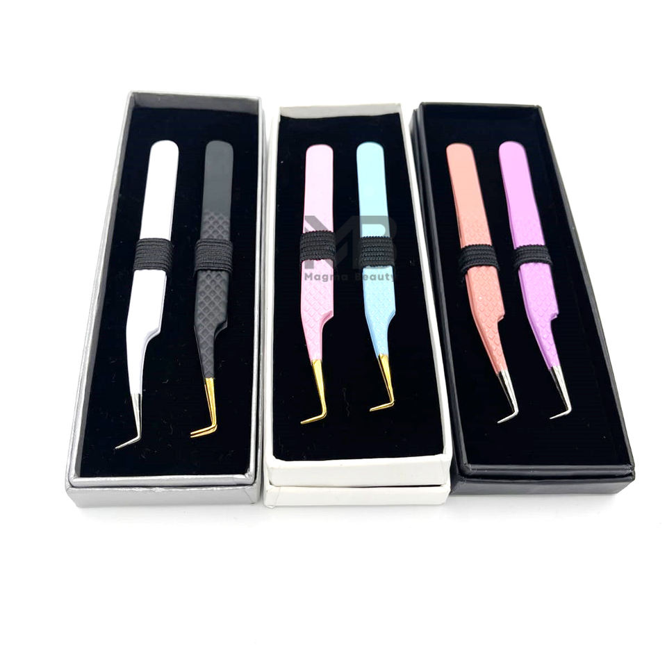 Pince à épiler à 90 degrés en acier inoxydable japonais avec pointe en fibre de marque personnalisée