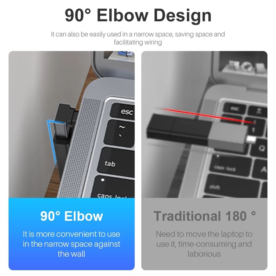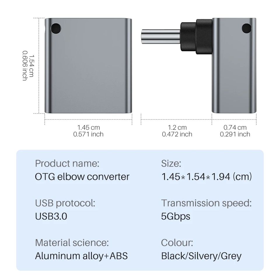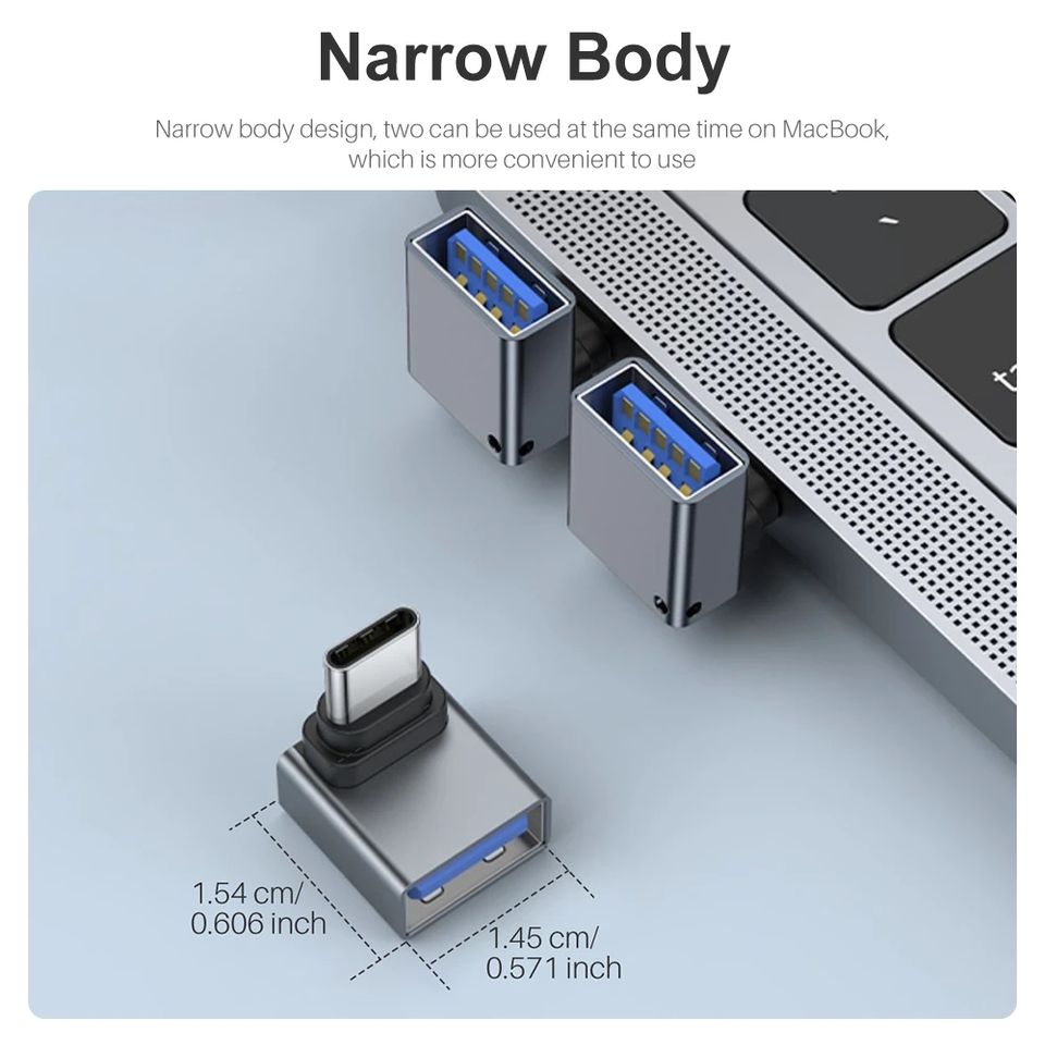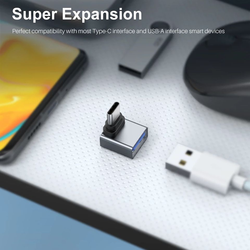Connecteur de convertisseur OTG mâle vers USB femelle, 90 degrés, 10Gbps, 3.2 USB Type C pour MacBook Pro Air iPad tablette