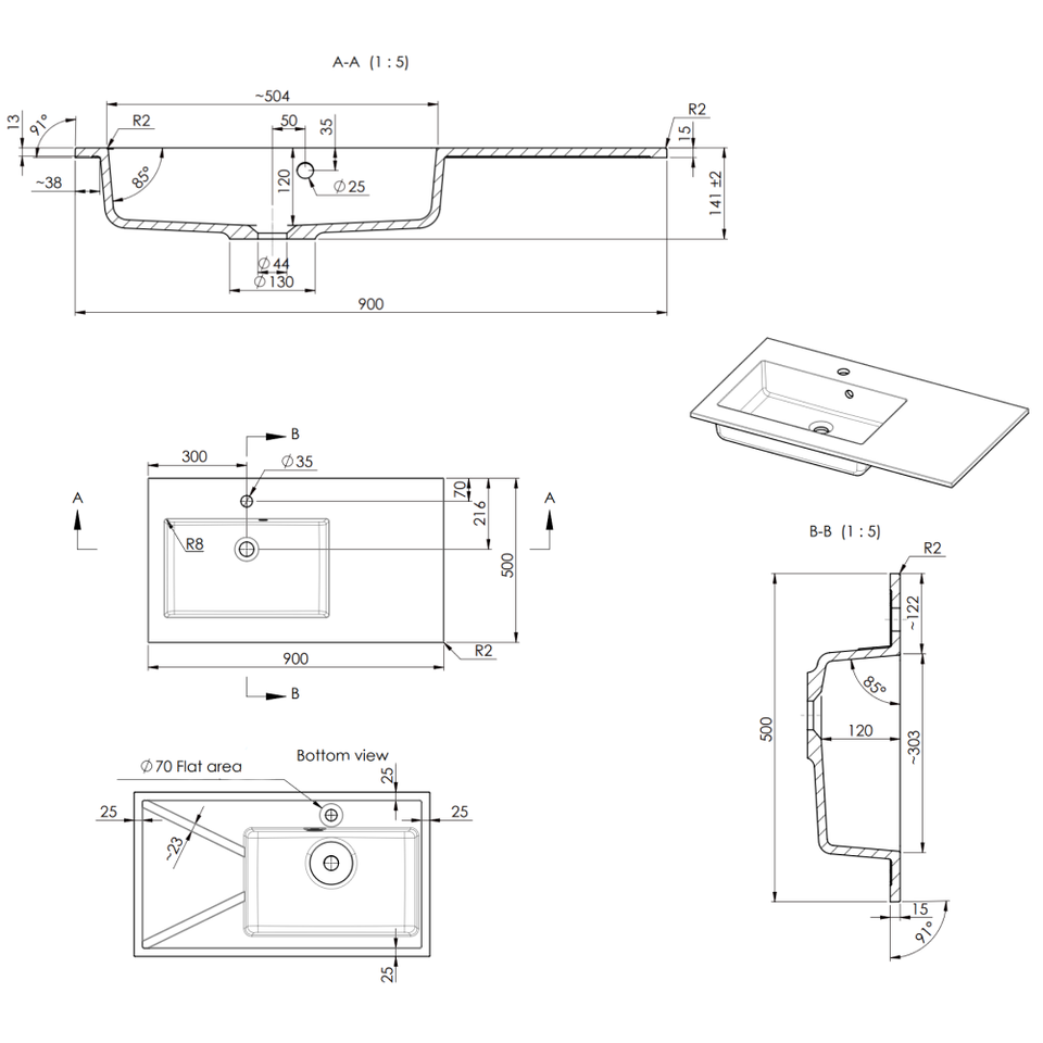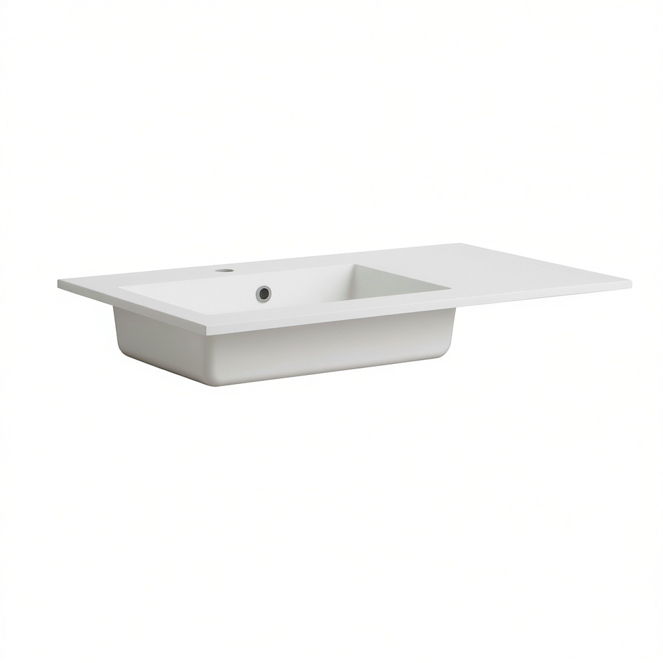 Vasque de salle de bain 90 cm pour gaucher avec lavabo, design unique pour une utilisation pratique