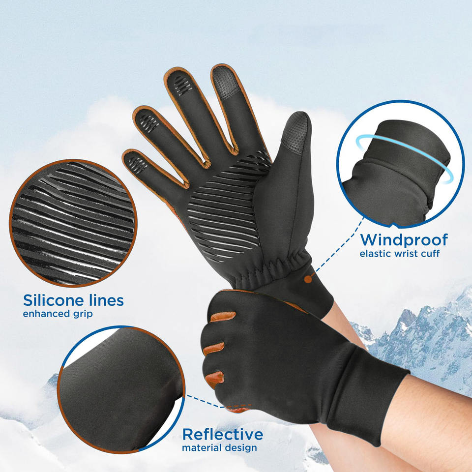 Gants de cyclisme d'hiver coupe-vent et respirants à doigts entiers, 90% polyester 10% élasthanne, pour homme et femme, course à pied et vélo