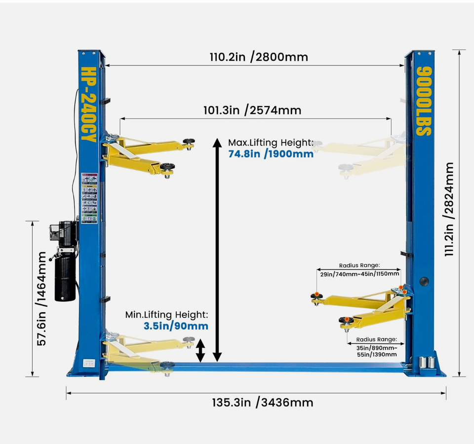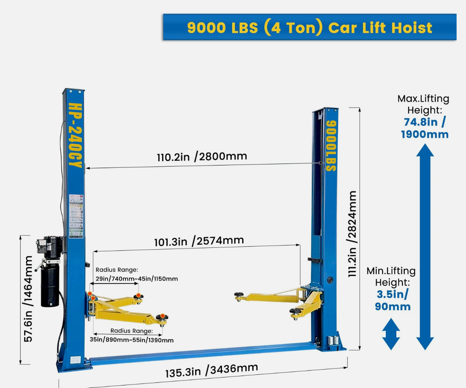 Pont élévateur 2 colonnes 9000 LBS pour voitures et camions, avec plaque de sol, action de levage et d'abaissement fluide, protège l'intégrité du véhicule