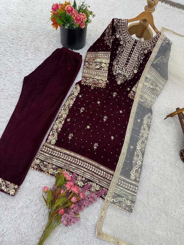 9000 Micro Velvet Designer Look Top-Dupatta Fond entièrement cousu Broderie lourde Siquance Work New Party Wear Salwar pour la plage