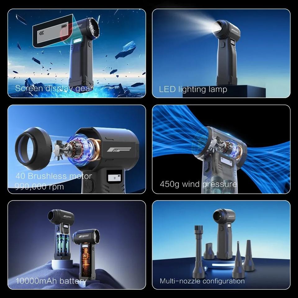 Ventilateur violent 90000 tr/min, souffleur d'air puissant, 9 vitesses réglables, ventilateur turbo portatif sans balais avec éclairage LED