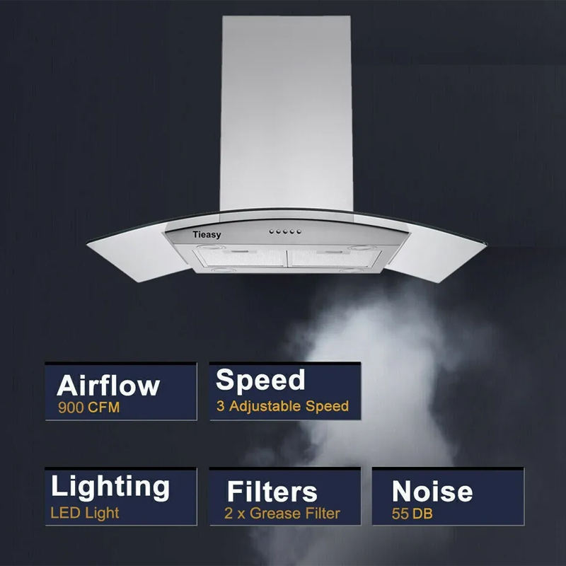900CFM Hotte de cuisine îlot de 36 pouces en acier inoxydable à 3 vitesses Nouveau