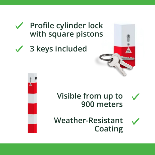 Poteau de sécurité en acier pliable haute visibilité de 900mm avec verrouillage automatique profilé à charnière bandes réfléchissantes couleur blanche