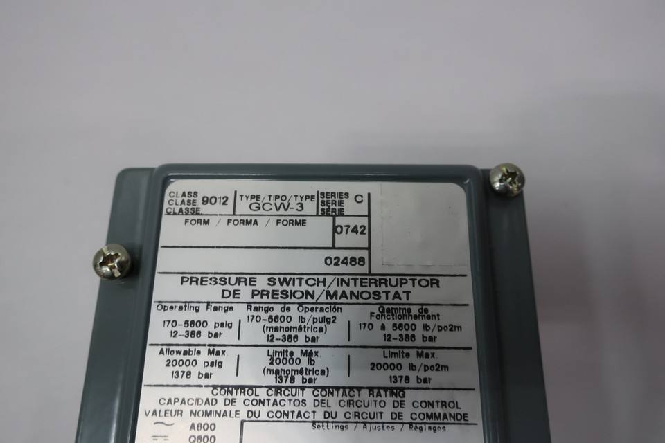 9012 Gcw 3 Switch 0 25in 600v Ac 170 5600psi Nouveau Original En Stock Automatisation Industrielle Pac PLC Dédié