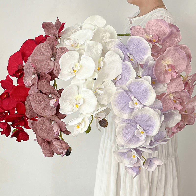 Tiges d'orchidées en soie réalistes de grande taille de 90 cm, cymbidium, fleurs rouges foncées, violettes, blanches, artificielles modernes, toucher réel