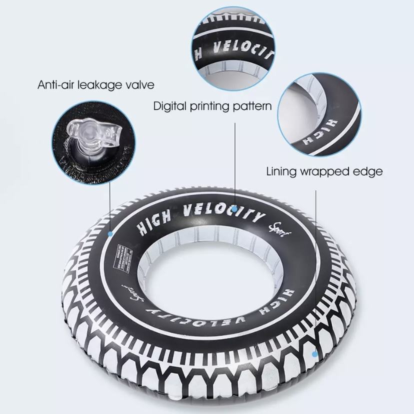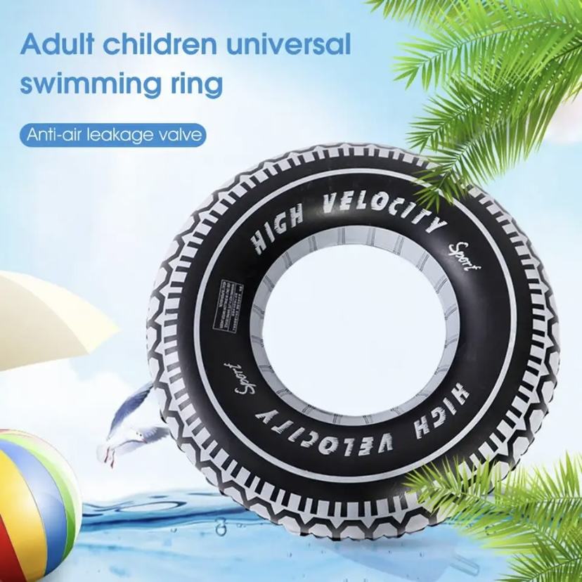Bouée gonflable noire robuste de 90 cm pour enfants et adultes - Flotteur de piscine en PVC durable pour le plaisir estival à la plage et en station balnéaire