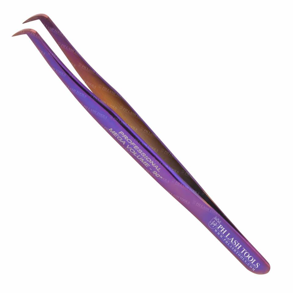 90deg Narrow Tip Russian Volume Tweezer in Purple Color Private Label, Russian Volume Eyelash Extension Tweezers 90deg Narrow