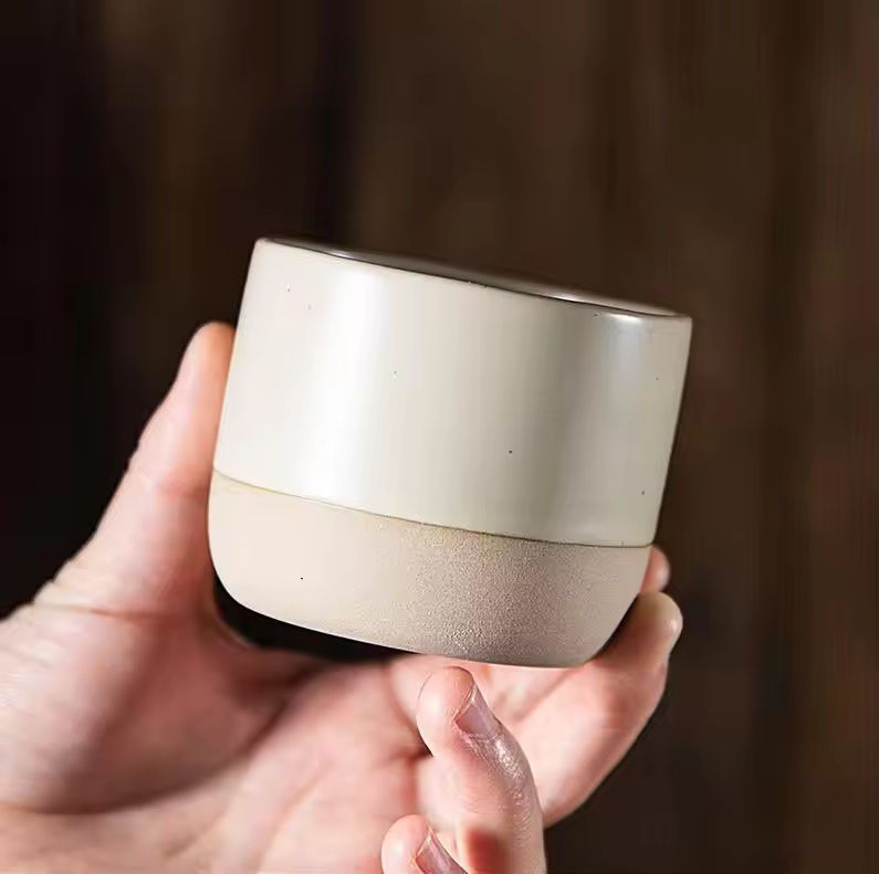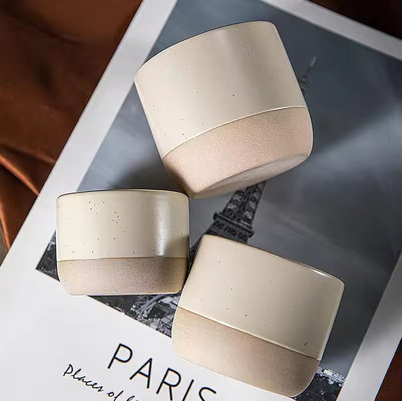 Tasses à café en céramique beige mat personnalisables avec logo, 90 ml, 150 ml, 220 ml, tasses à thé Kung Fu sans anse, tasses à expresso en argile