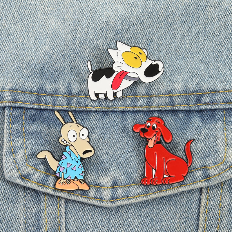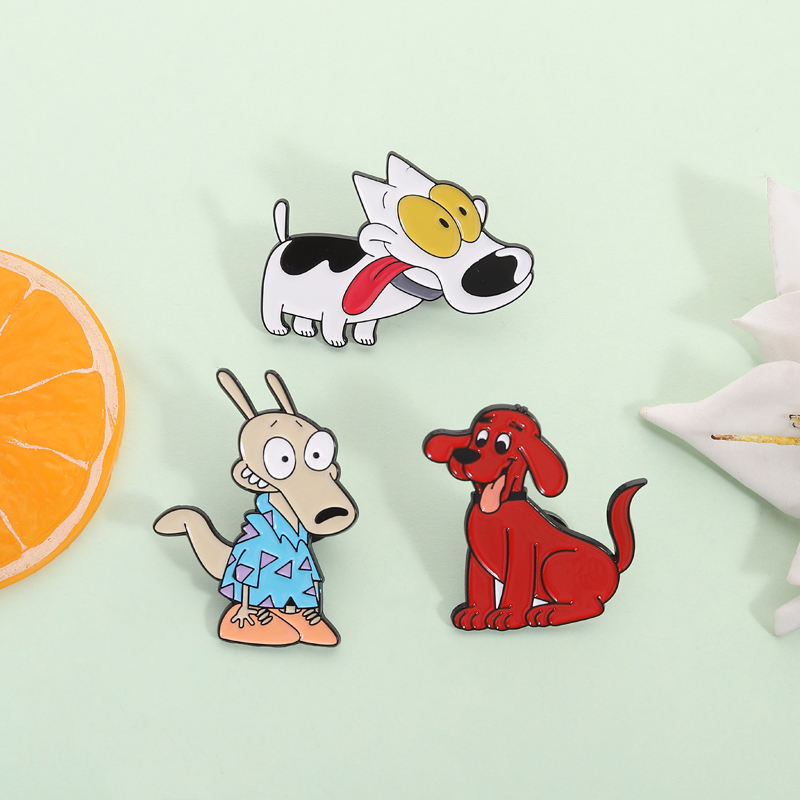 Épingles en émail de personnages de dessins animés de la comédie des années 90, gros chien rouge, chiot aux gros yeux, broche, badge de revers, bijoux, cadeau pour enfants, vente en gros