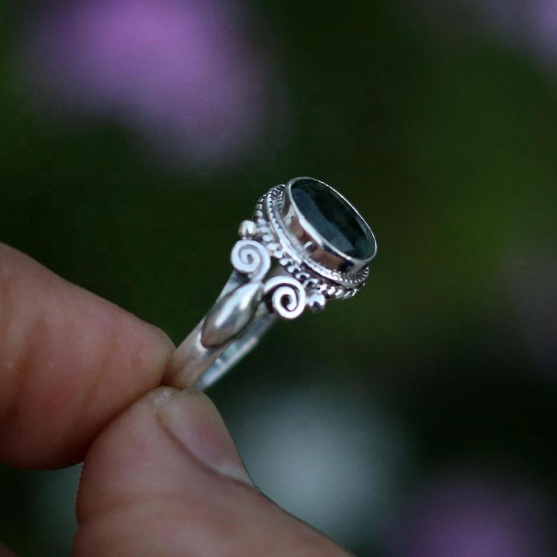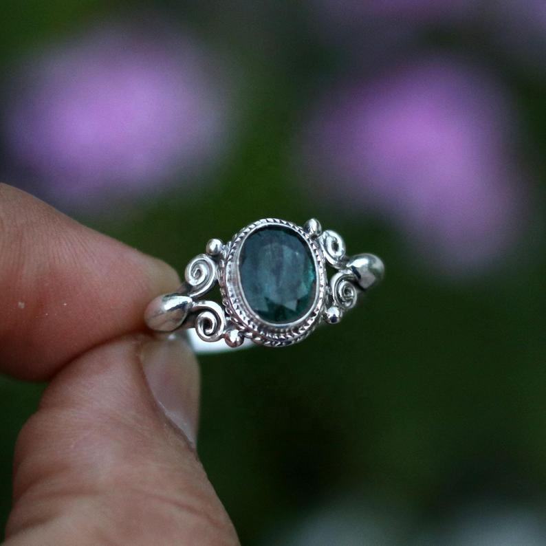 92.5 argent Sterling pierre précieuse bague émeraude forme ovale Rose coupe naturelle bonne qualité pour elle pour fiançailles cadeau de fête de mariage