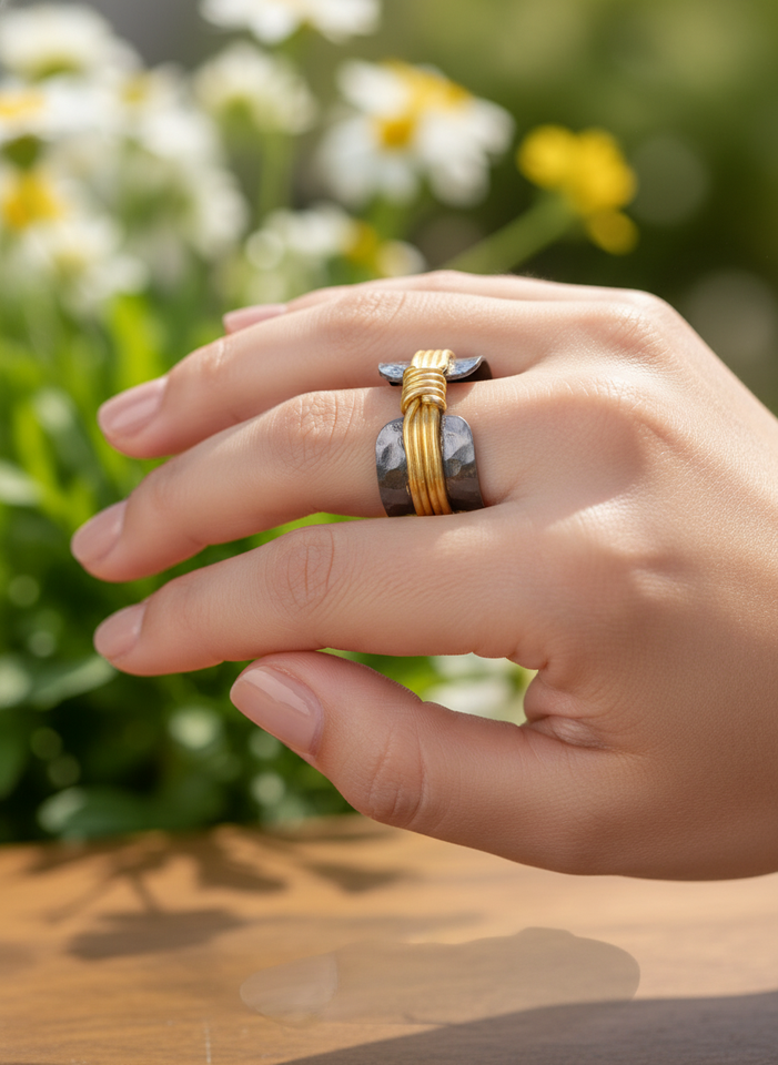 Bague de luxe bicolore en argent sterling 92,5 plaqué or 18 carats pour femmes | Bijoux de mariage et de fête