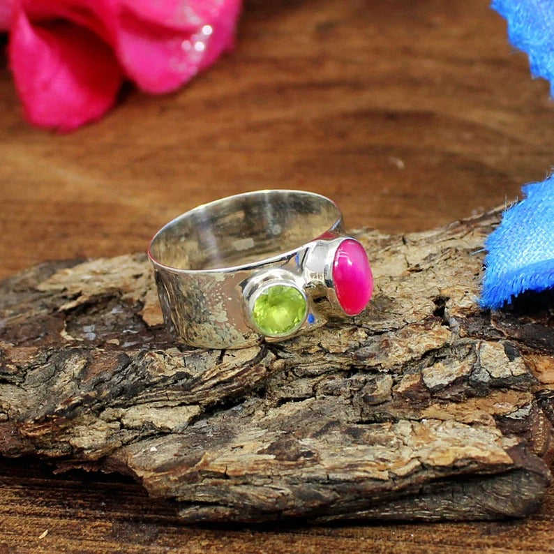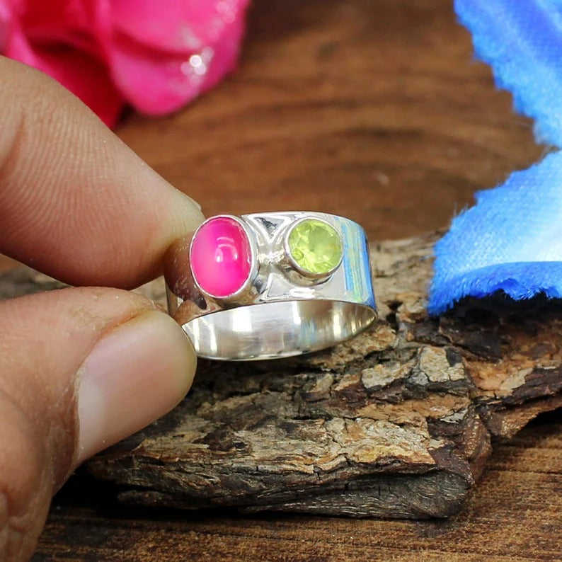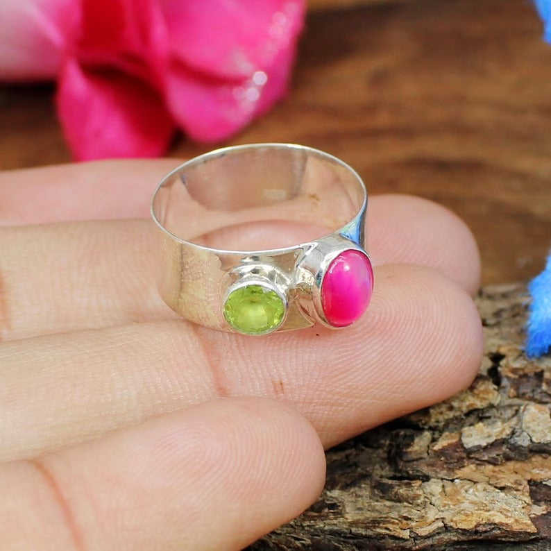 Fuchsia (7 X 5 MM Approx, Oval),Peridot (5 MM Approx, Round)Gemstone Size