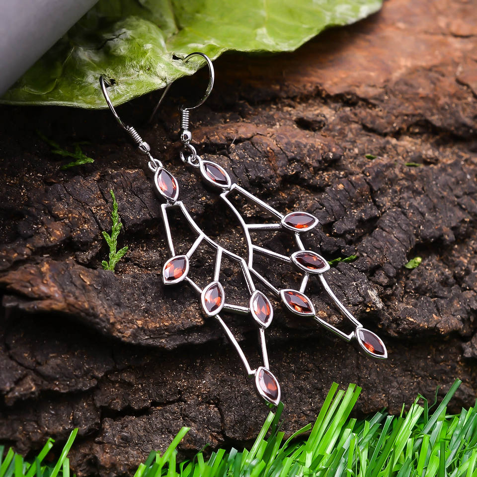 Boucle d'oreille pendante en argent Sterling 92.5 en forme de Marquise de 5.7 grammes, bijoux en grenat naturel du maroc, cadeau mignon pour femmes