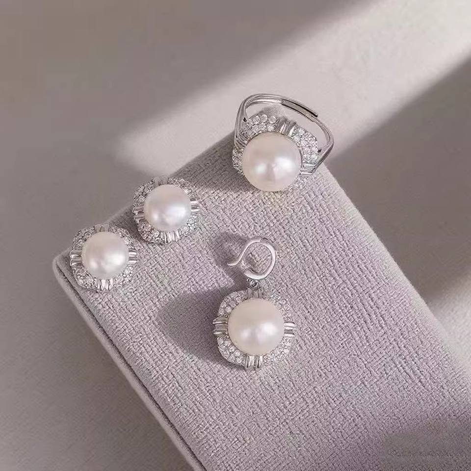 9248DIY Accessoires en perles, ensemble en argent S925, pendentif tête de fleur de poire vide, clou d'oreille pour style tendance, pierre principale en diamant pour cadeaux