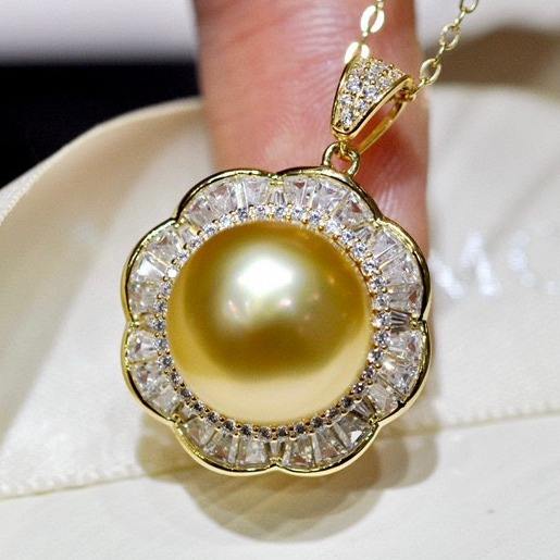 Pendentif en perle d'or naturelle de précision 925, rond de 11 à 12 mm, avec micro défauts, super polyvalent, livré avec un collier en argent