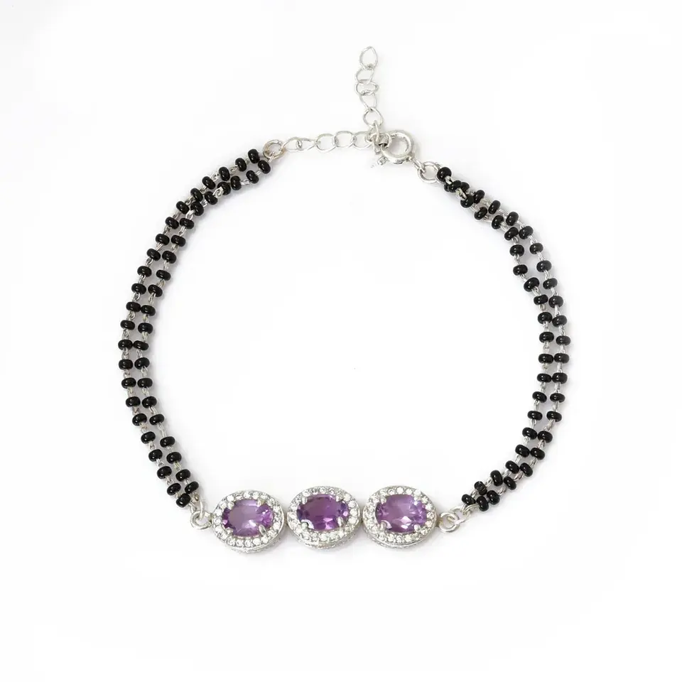 925 Sterling Silver,Amethyst Gemstone,Black BeadsMaterial