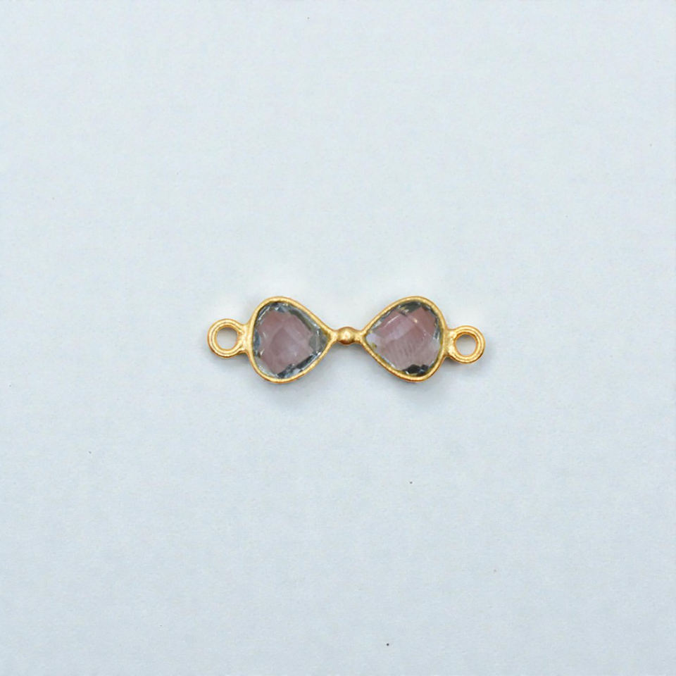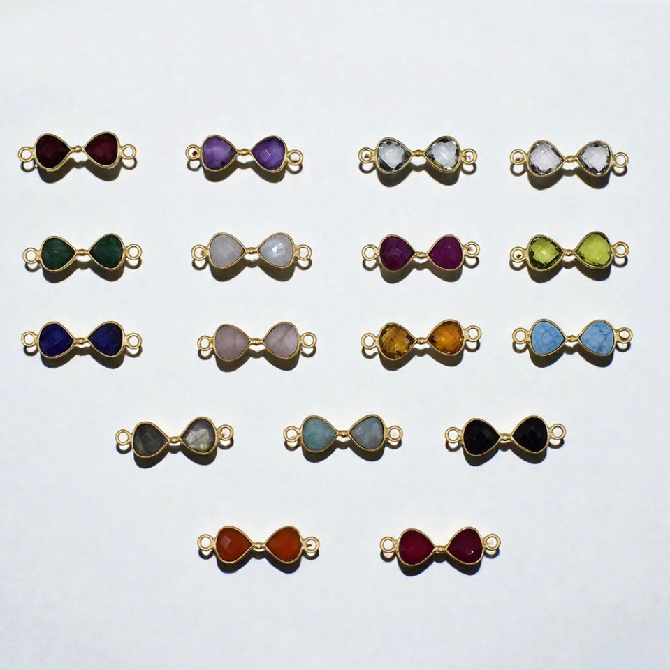 Connecteur en argent 925 avec double pierre précieuse - Charme serti en forme de cœur de 8 mm - Vente en gros de composants de bijoux DIY pour collier et bracelet
