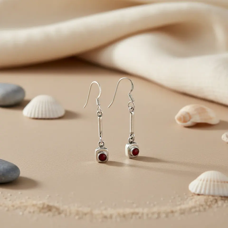 Boucles d'oreilles pendantes en argent 925 avec pierre précieuse rouge tendance pour cadeau femme