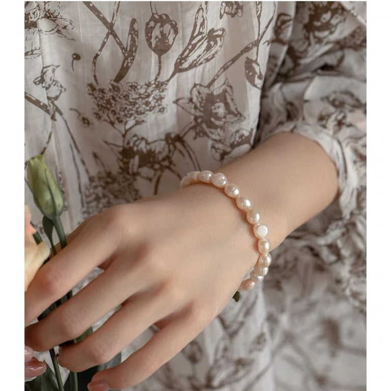 925 Silver Freshwater Pearl Bracelet Women's Fashion Jewelry Baroque Natural First Beads Bracelet & Bangle