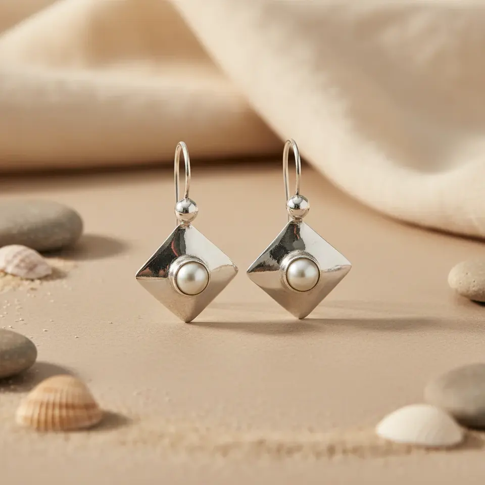 925 Silver Freshwater Pearl Drop Earrings for Women Vintage Flower Style Gold Plated Jewelry for Party Gift
