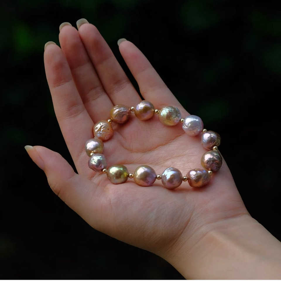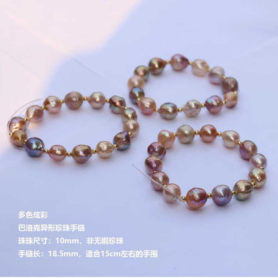 Bracelet en argent 925 plaqué or avec perles de culture d'eau douce baroques multicolores naturelles et perles multicolores