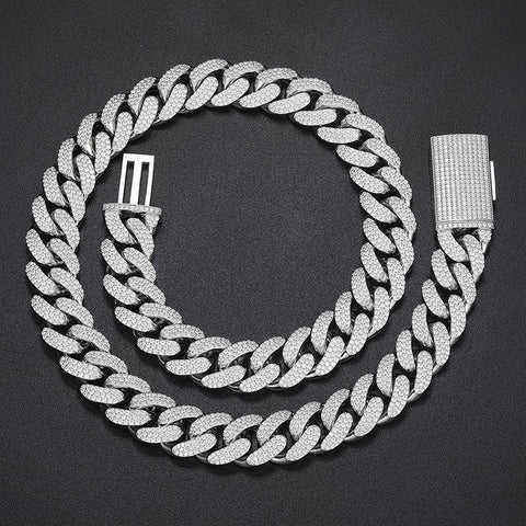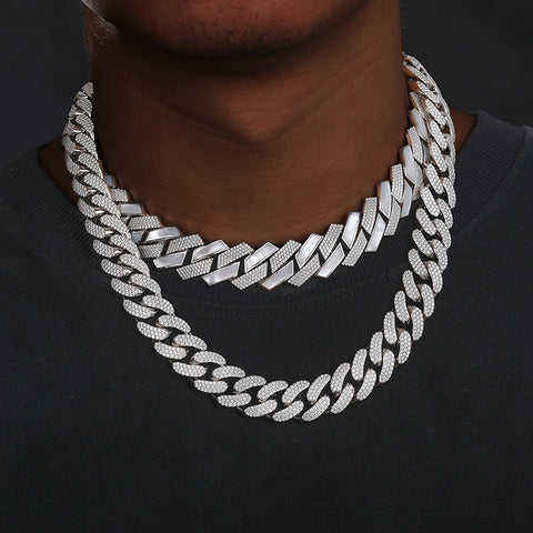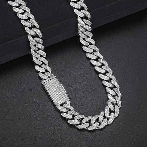 Chaîne cubaine élégante en argent 925 plaqué or avec diamants de laboratoire pour homme