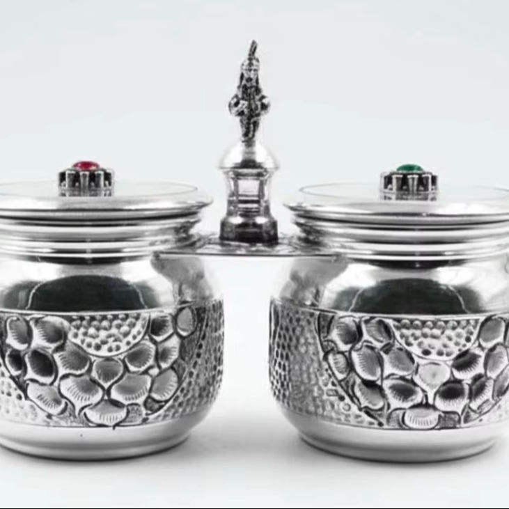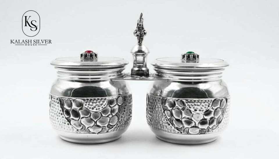 Ensemble de 2 pots de rangement artisanaux en argent 925 avec couvercle, design traditionnel, pour fruits secs et mukhwas, idéal pour offrir