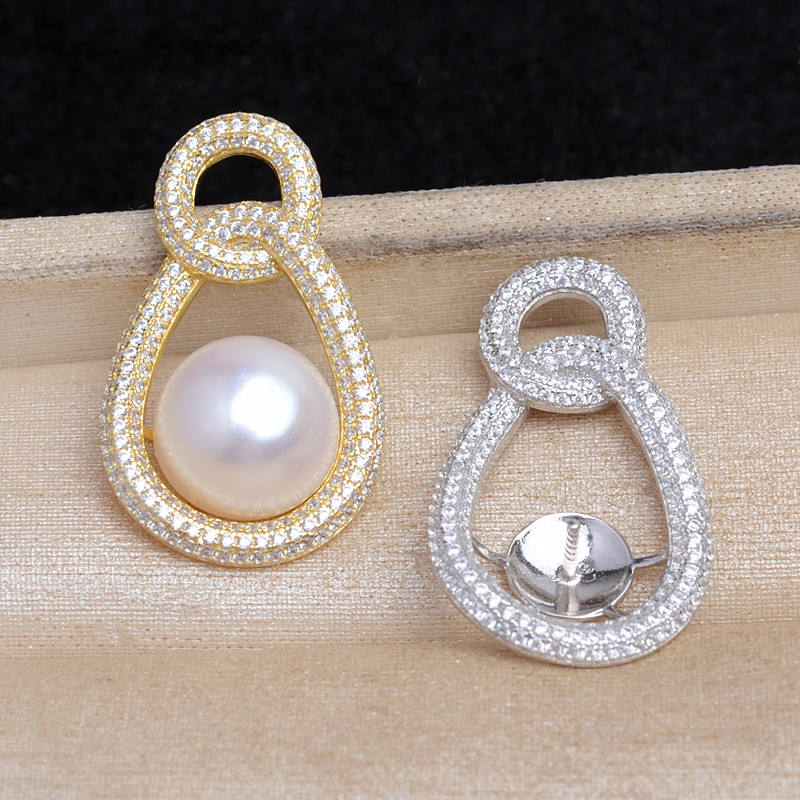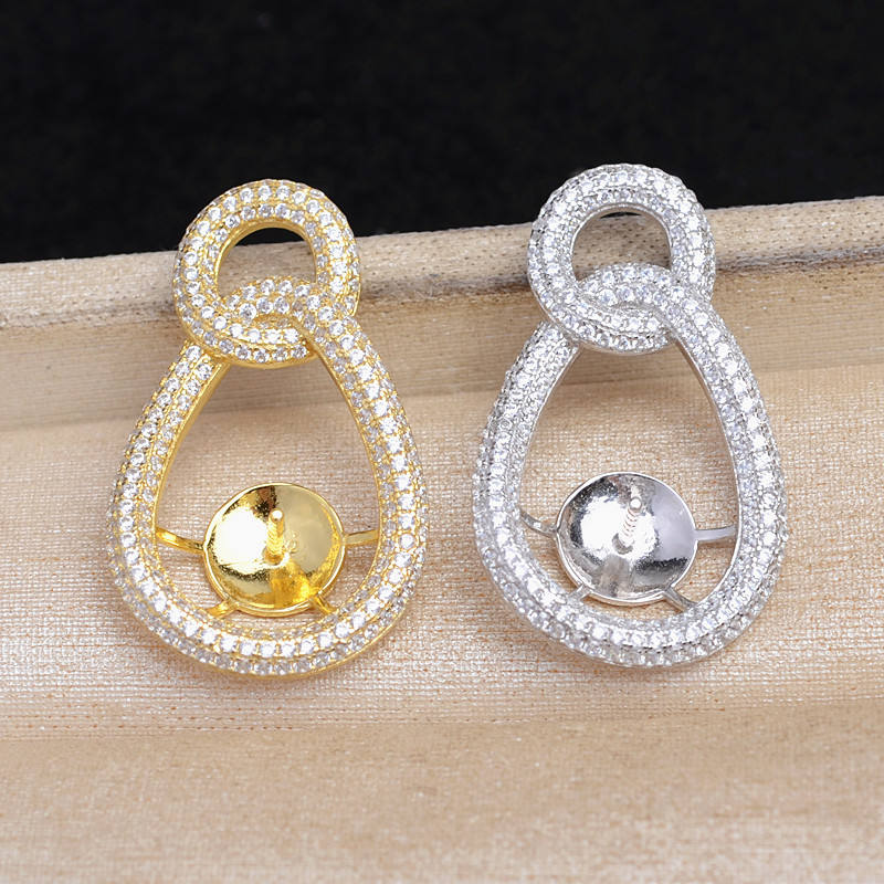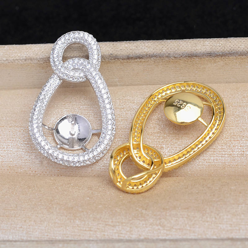 Pendentif de luxe en argent 925, accessoire de bricolage, double boucle, base vide semi-finie 12-14 mm pour bijoux en perles JG5861
