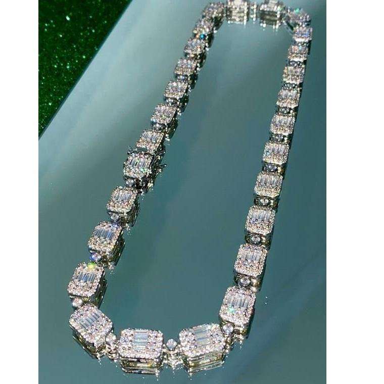 925 Silver Moissanite Diamond Iced Chain Necklace Hip Hop Bold Jewelry for Men and Women Fashion Gift
