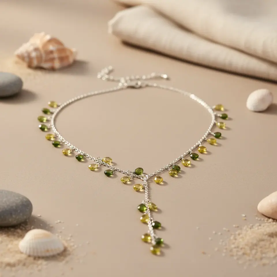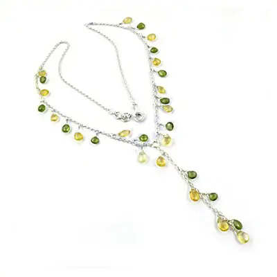 925 Silver Necklace with Emerald Sapphire Zircon Gems Rhodium Plated Trendy Box Chain for Women's Daily Wear
