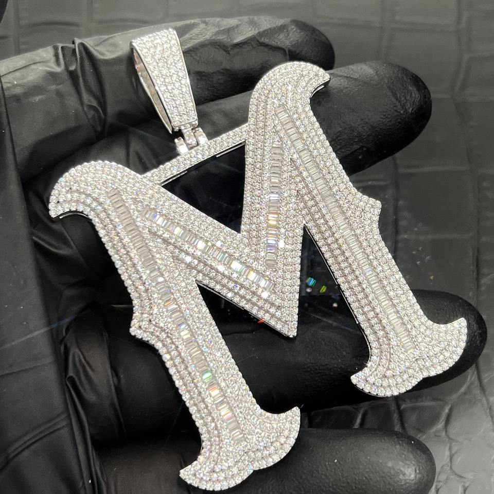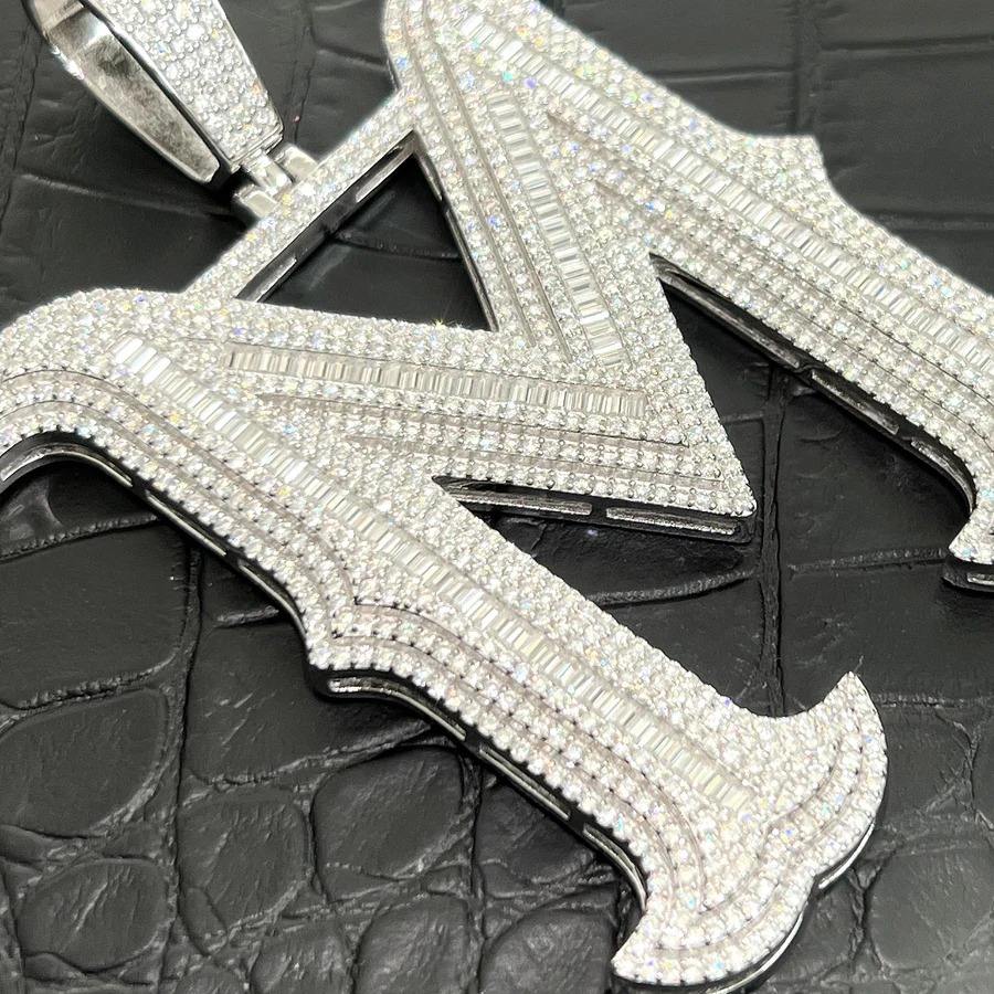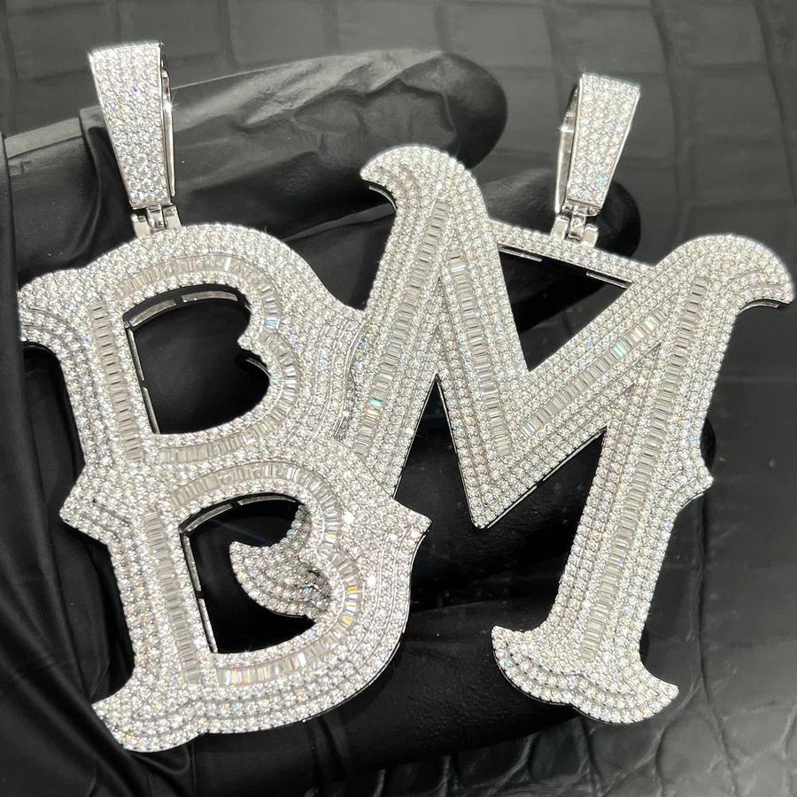 Collier en argent sterling 925 avec pendentif lettre logo glacé testé au diamant, style hip-hop pour femme, diamant VVS, bijoux fins personnalisés