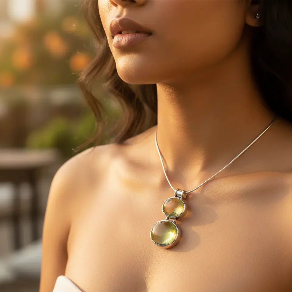 925 Silver Pendant with Peridot Gemstone Rose Gold & Rhodium Plated Chic Religious Style Charm for Women Gift Jewelry
