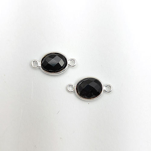 925 Silver Plated Natural Black Onyx Oval Gemstone Connector 2 Loop Faceted Bezel Pendant for Necklace Bracelet Fine Charms