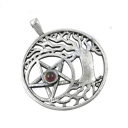 Pendentif en argent 925 plaqué or rose et rhodium, arbre de vie, pentacle, bijoux religieux