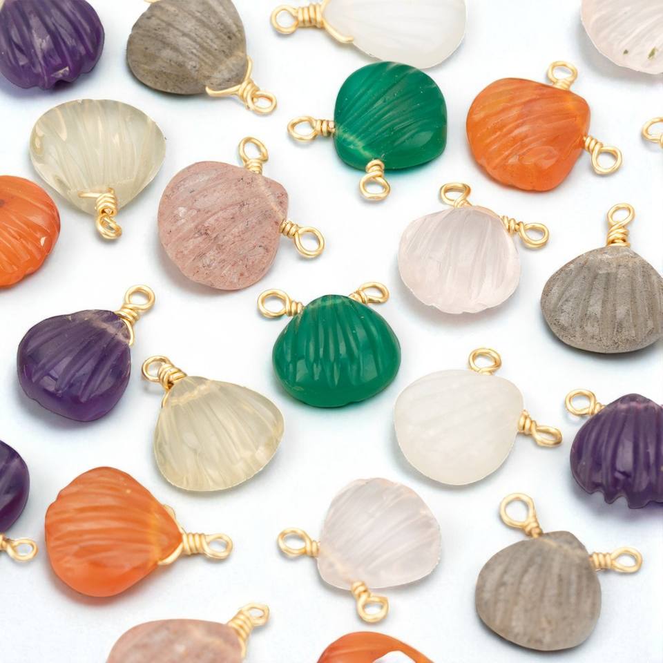 925 argent coquille sculpté arc-en-ciel pierre de lune pendentif à breloques-bricolage plaqué or breloques en gros