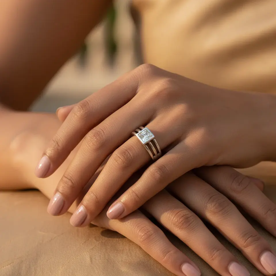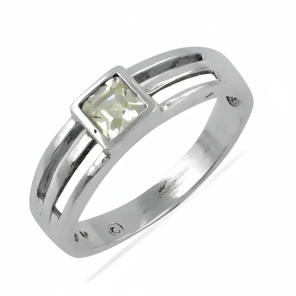 Bague solitaire en argent 925 avec pierre précieuse carrée pour femmes, bijoux tendance pour un usage quotidien avec sertissage incrusté
