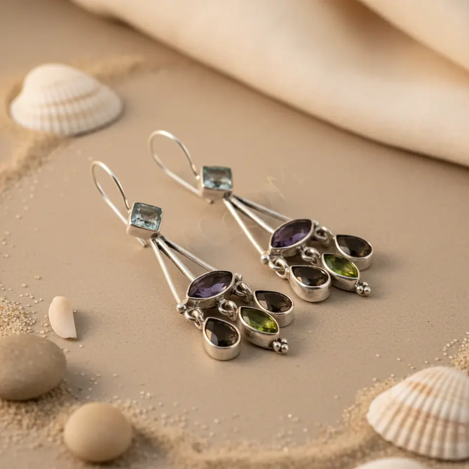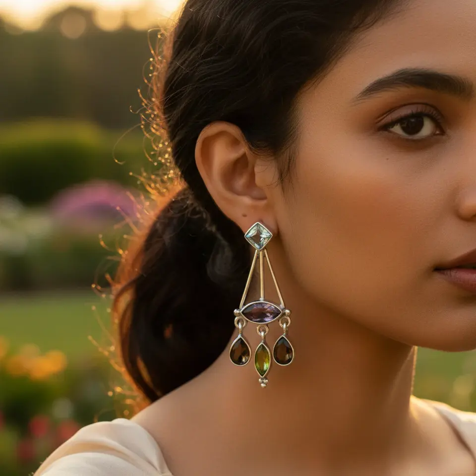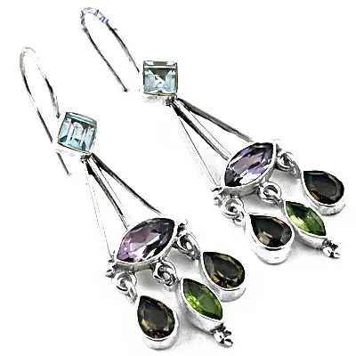 925 Silver Vintage Dangle Earrings Multi-Gemstone Freshwater Pearl Diamond Geometric Drop Design for Women's Wedding Party Gift
