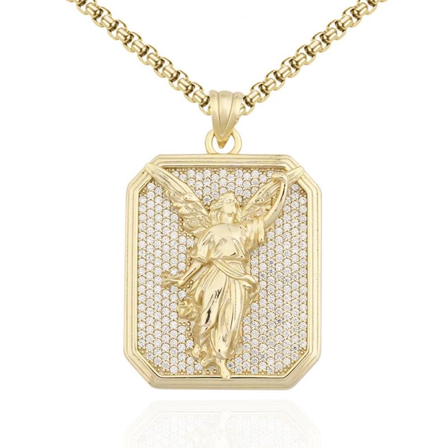 Collier pendentif personnalisé en argent 925 plaqué or avec strass en cristal et logo de marque pour homme, avec zircon comme pierre principale