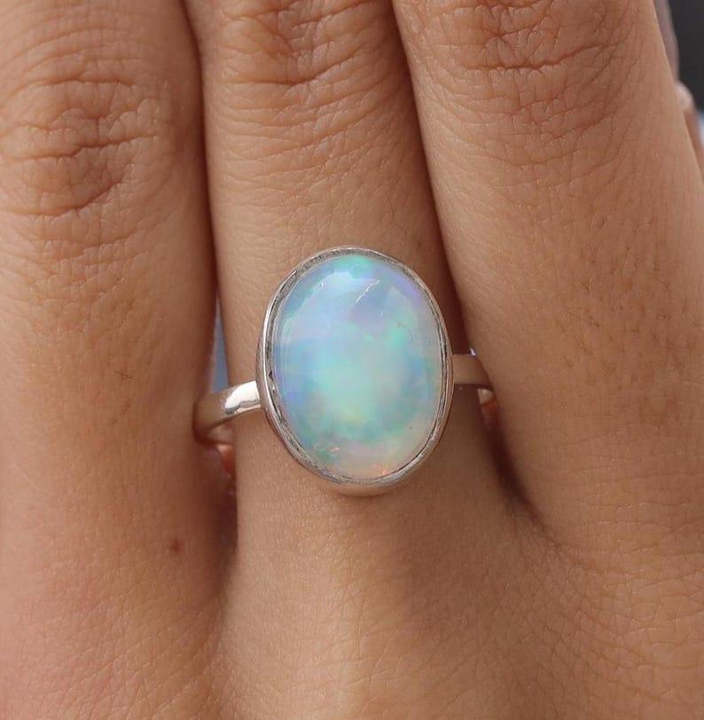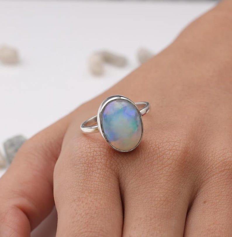 925 bague de promesse de Style Boho en argent sterling massif bijoux de créateur faits à la main avec diamant de taille ovale en opale bleue pour les fêtes
